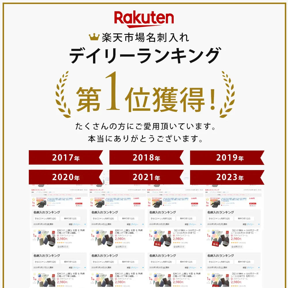 デザイン性はもちろん、価格と品質のバランスにもこだわったアイテムが高く評価され、楽天市場でランキング1位を受賞した商品は30種類以上。多くのお客様に選ばれてきた実績が、信頼の証です。